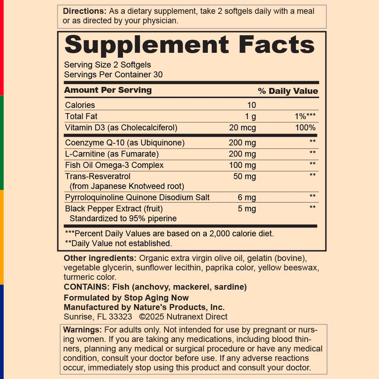 | Coenzyme Q10 (as ubiquinone) | 200 mg | ** |