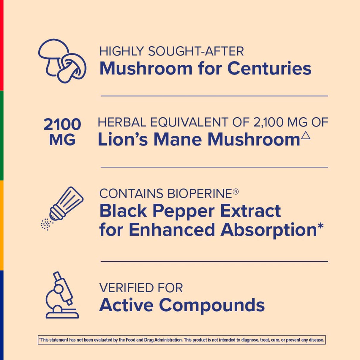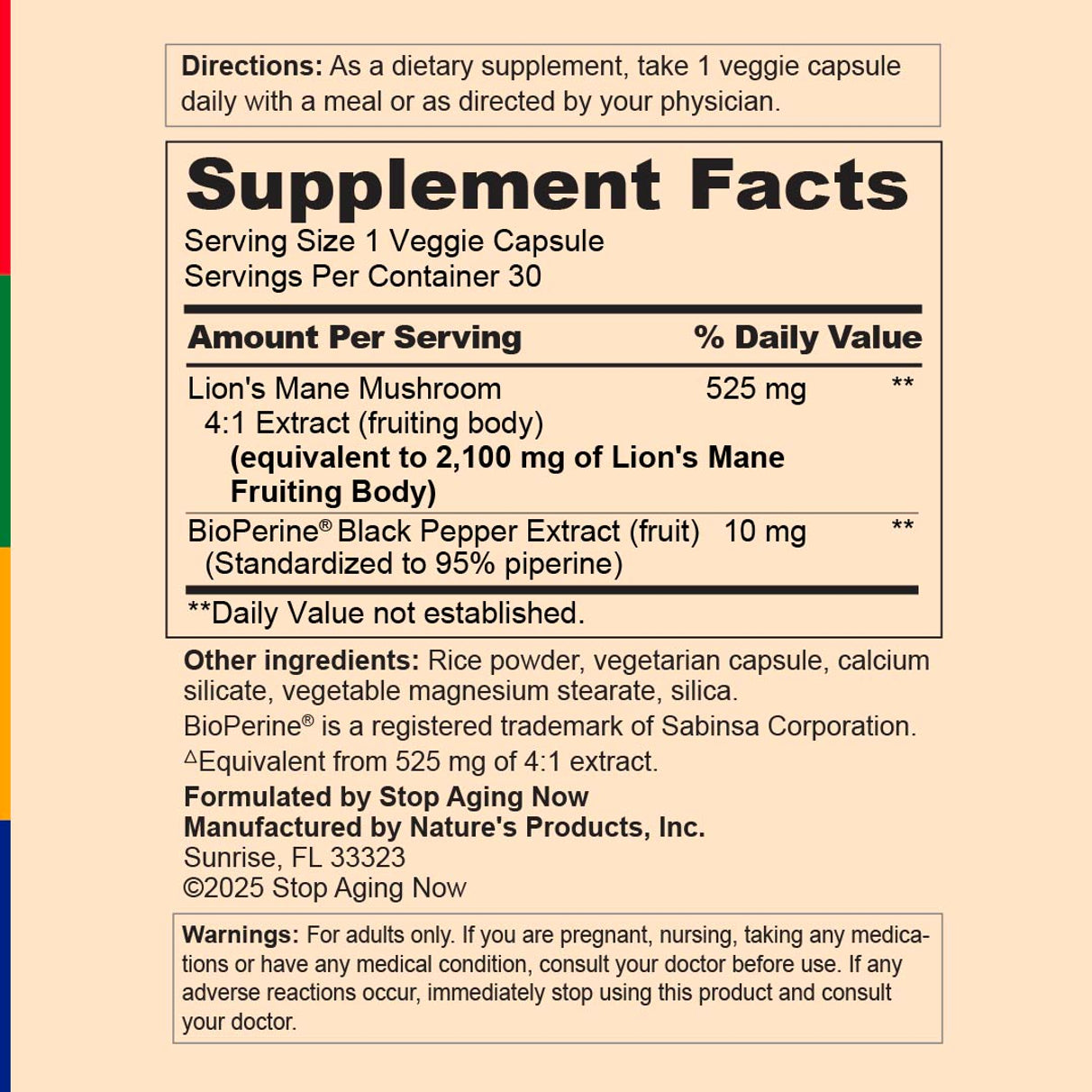 | (équivalent à 2 100 mg de corps fructifère de crinière de lion) | ||