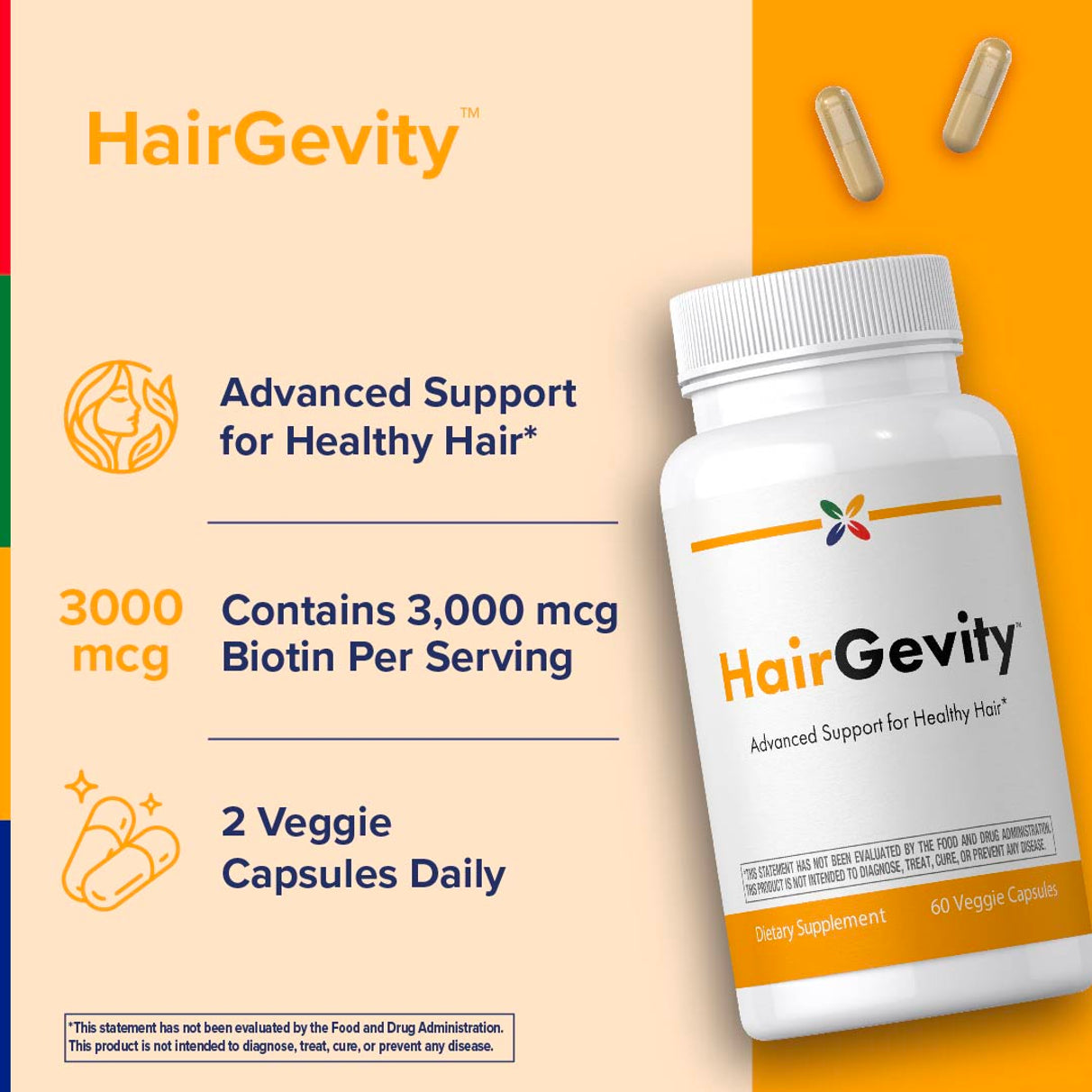 HairGevity™ è una soluzione unica, naturale e senza sostanze chimiche per aiutarti a mantenere una chioma folta e lucente con l'incredibile vantaggio di ridurre i capelli grigi, indipendentemente dalla tua età. Questa combinazione di potenti botanici, antiossidanti ed elementi traccia funziona sia per uomini che per donne per promuovere capelli più spessi, brillanti e sani.*
