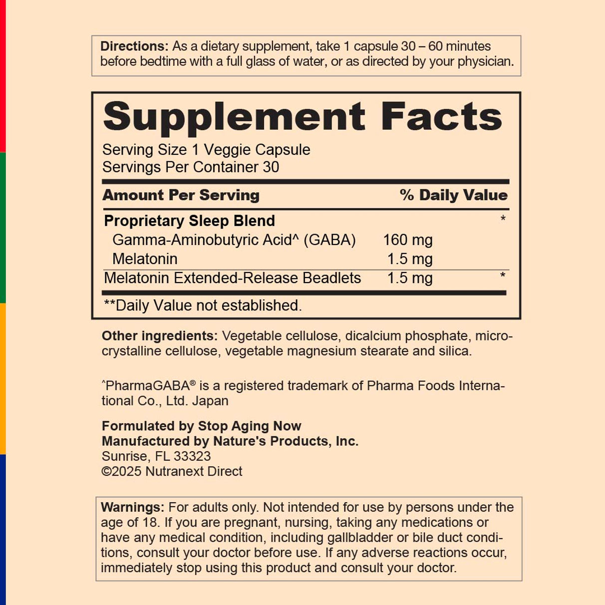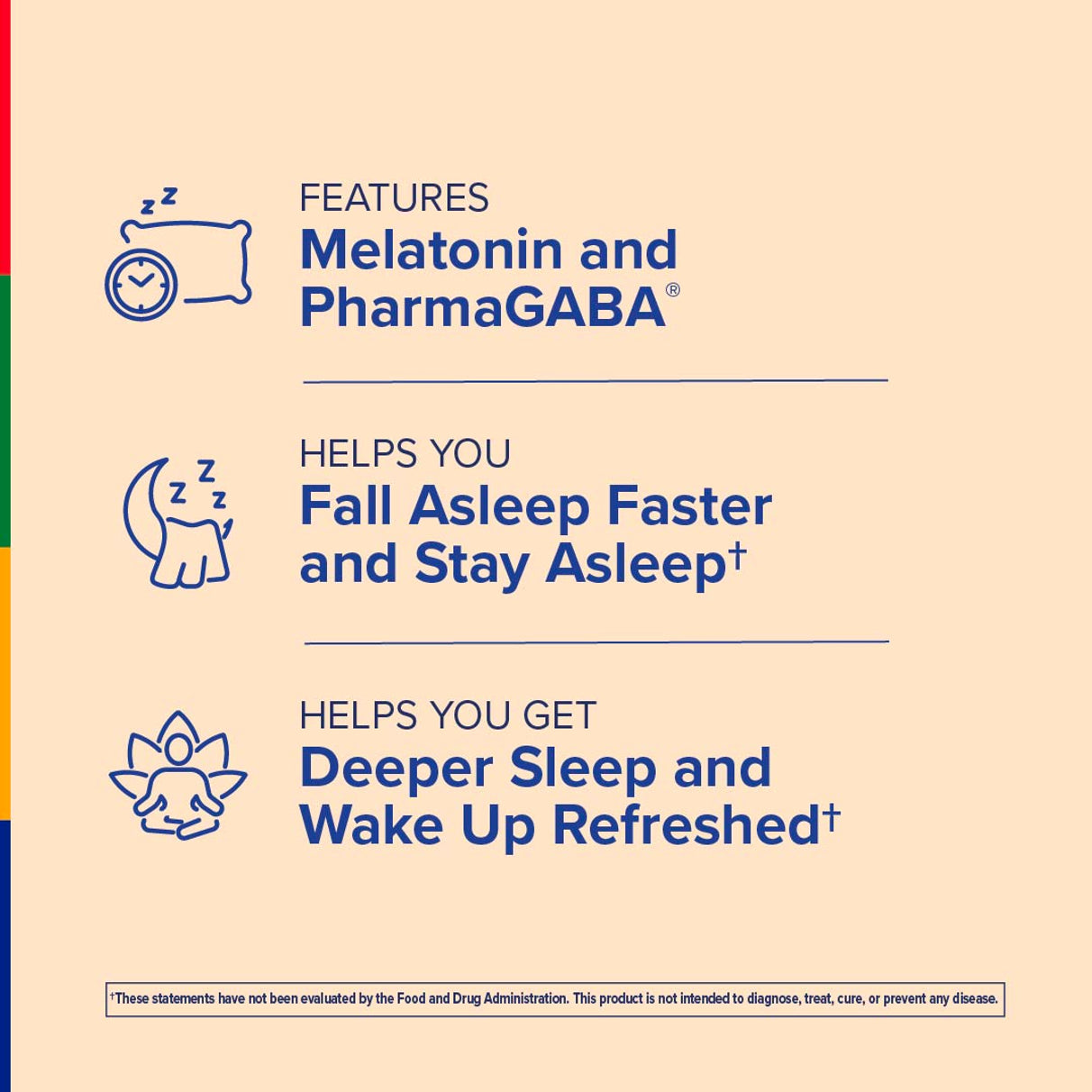 For occasional sleeplessness, this ultimate sleep formulation combines extended-release melatonin with PharmaGABA®, a concentrated form of the neurotransmitter GABA, to help you ease into a restful sleep.*