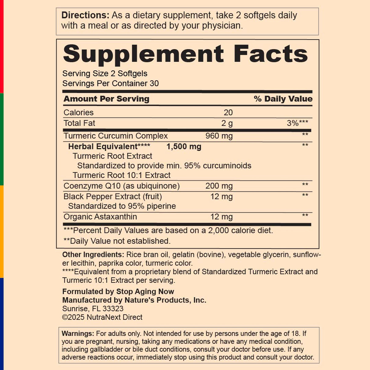 NextLevel Curcumin is an incredible supplement. First, it is a liquid *in a soft gel* so the body absorbs it quickly. Turmeric, CoQ10, and Astaxanthin support your body's healthy inflammatory response. NextLevel Curcumin really helps my body. Great Product!